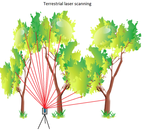 Nedavno je dokazano da TLS tehnologija daje jako dobre rezultate u prikupljanu podataksa prilikom inventure šumskih površina. Prvi komercijalni TLS sistem je proizvela kompanija Cyra Technologies, 1998. godine, a prvi radovi koji se odnose na procjenu atributa stabala na nivou premjernih krugova objavljeni su početkom 2000. Godine. Rekonstrukcijom stabla stabala moguće je izvesti kvalitetne procjene zapremine debla i biomase koje su usporedive u preciznosti s najboljim nacionalnim alometrijskim modelima rasta šuma. Novi TLS sistemi se stalno razvijaju, a veličina i težina laserskih skenera brzo opada. Upotreba laserskih impulsa s dvije valne duljine olakšava razdvajanje povrata lista od povrata stabljika, grana i tla, što je pogodno za usluge šumskih ekosustava. Očekuje se da će se TLS operativno koristiti u inventarizaciji šuma na nivou odjela čim bude dostupan odgovarajući softver. Nekoliko pozicija skeniranja je neophodno za mjerenje svih stabala na odrđenoj površini. Pojedinačni skupovi podataka spajaju se, obično koristeći umjetne ciljeve, da bi formirali oblak od jedne točke. Ovaj pristup pruža najbolji skup podataka, jer objedinjeni oblak tačaka snima stabla iz različitih pravaca. Ovakav pristup baš praktičan zbog troškova ručnog ili poluautomatskog procesiranja potrebnog za registraciju nekoliko skeniranja.